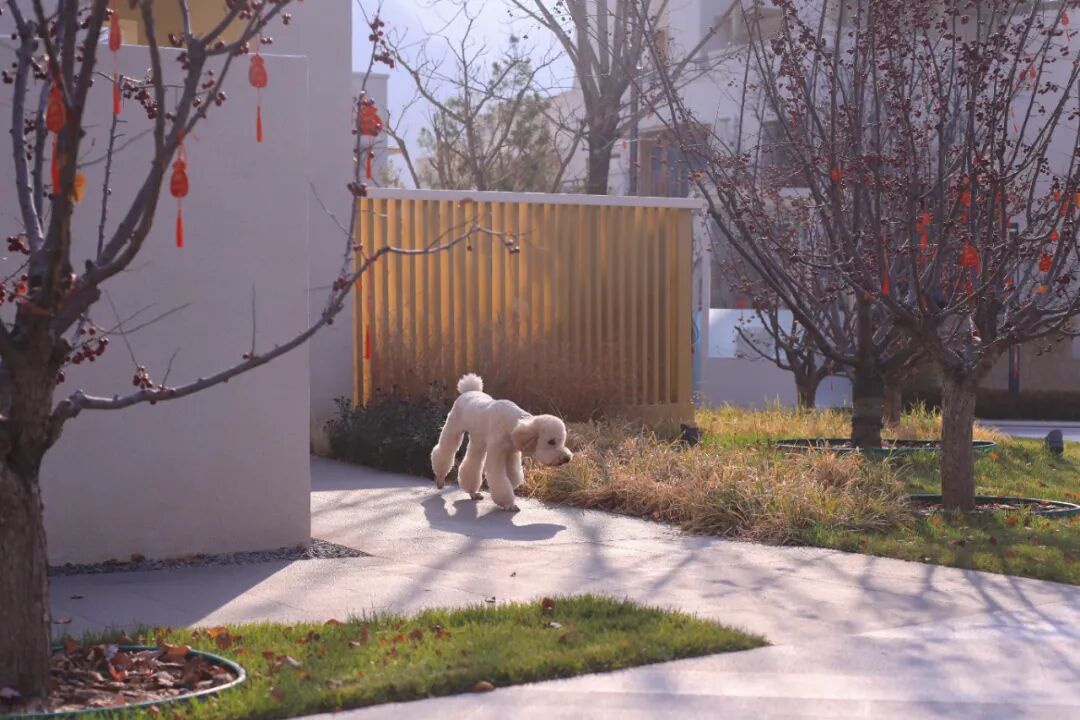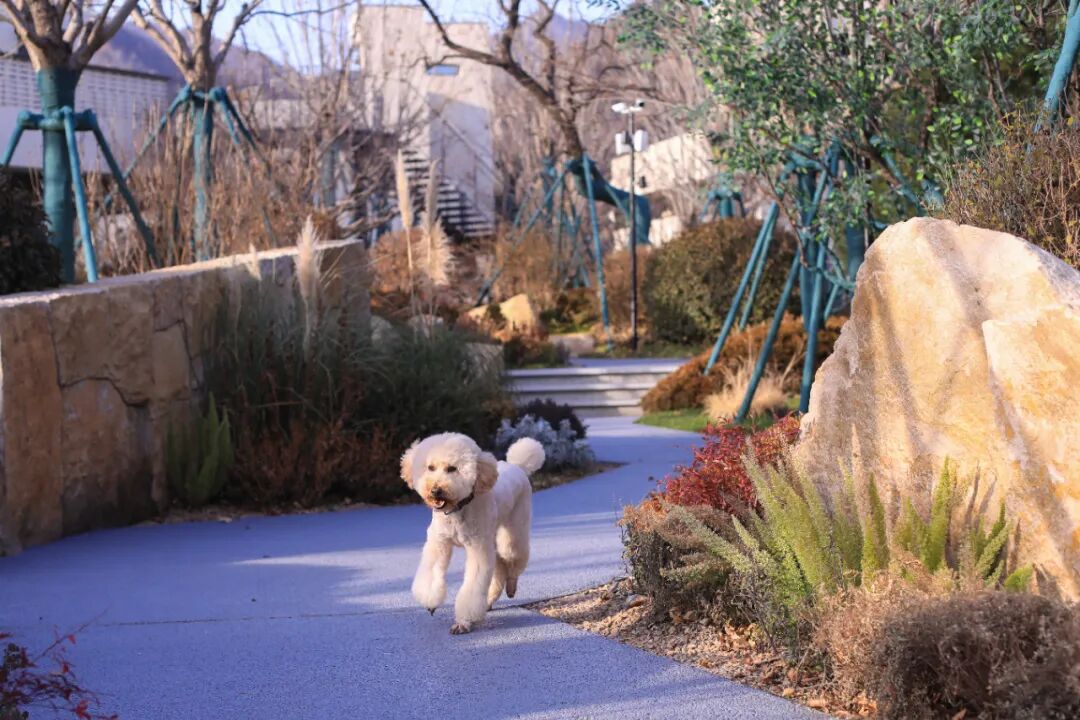 沿着蜿蜒的石板路往里走,最先迎接你的不是冰冷的大门,而是山间的味道,以及令毛孩子喜爱的“撒欢草坪”