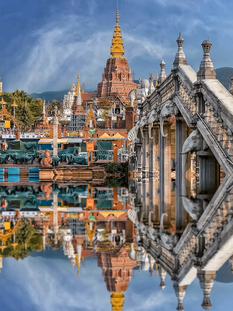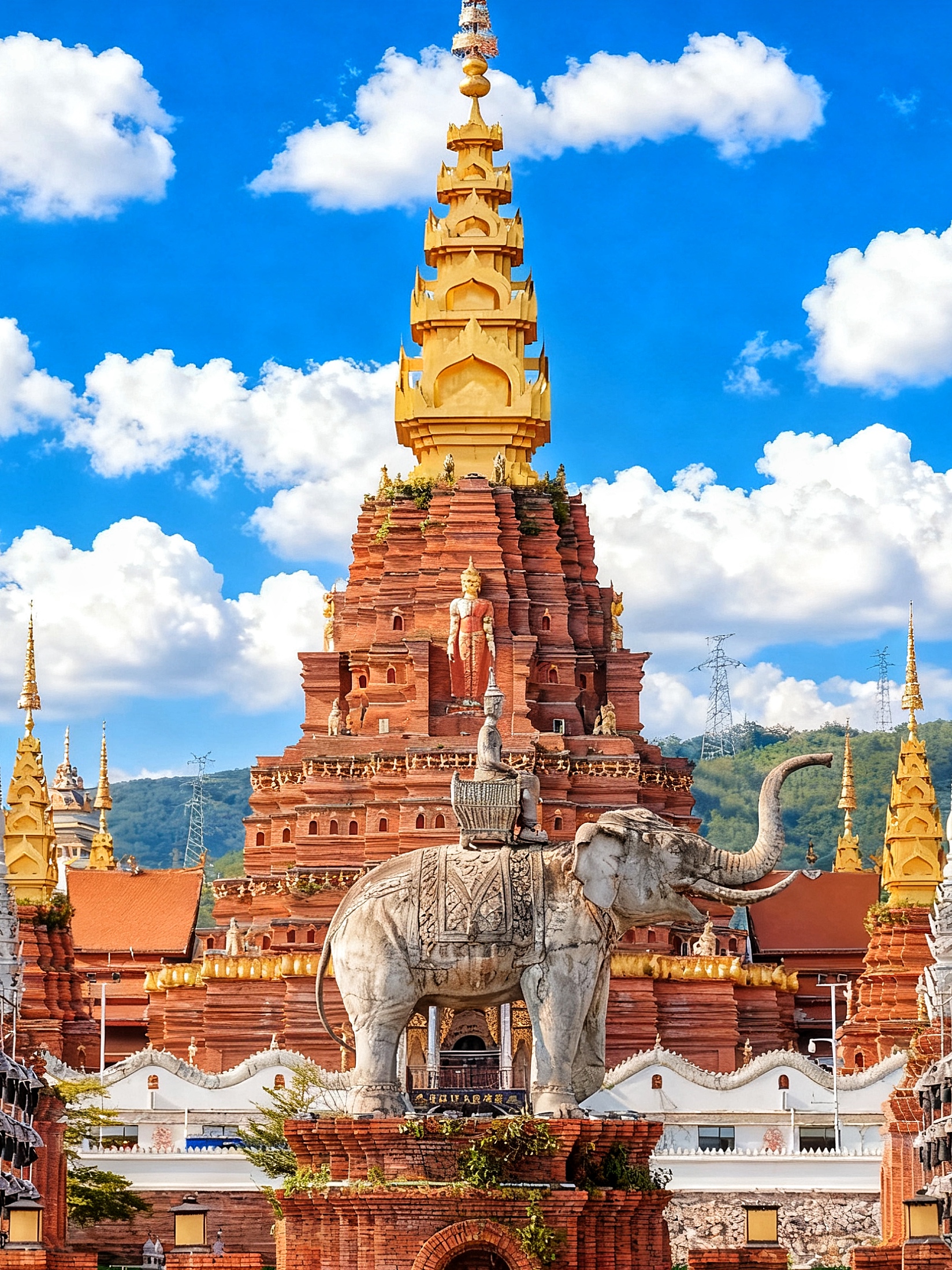 C位的景洪大金塔气势恢宏