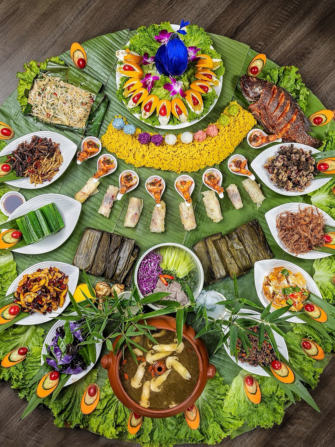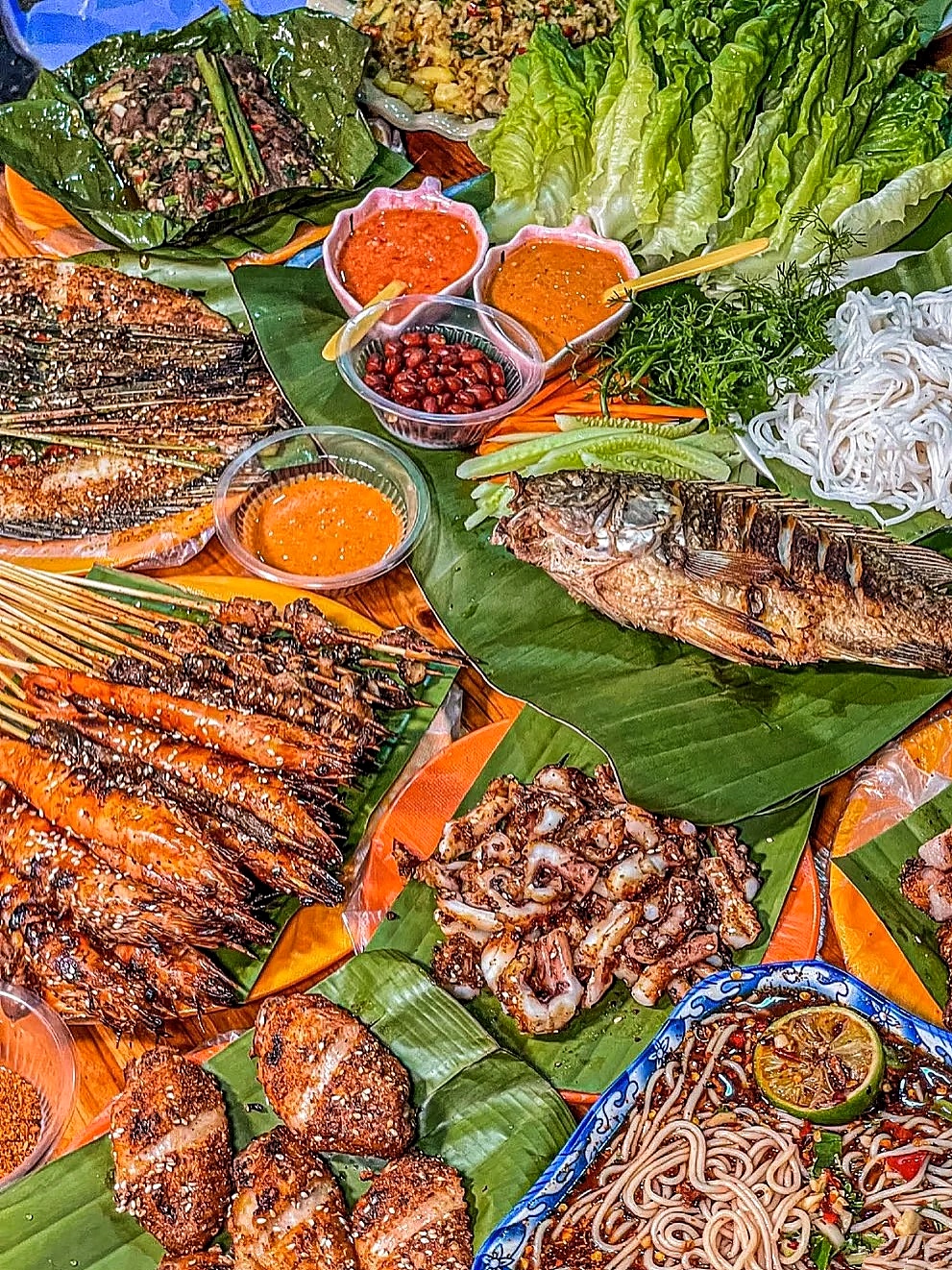 香茅草烤鱼、舂鸡脚、菠萝饭、泡鲁达...
