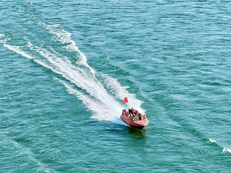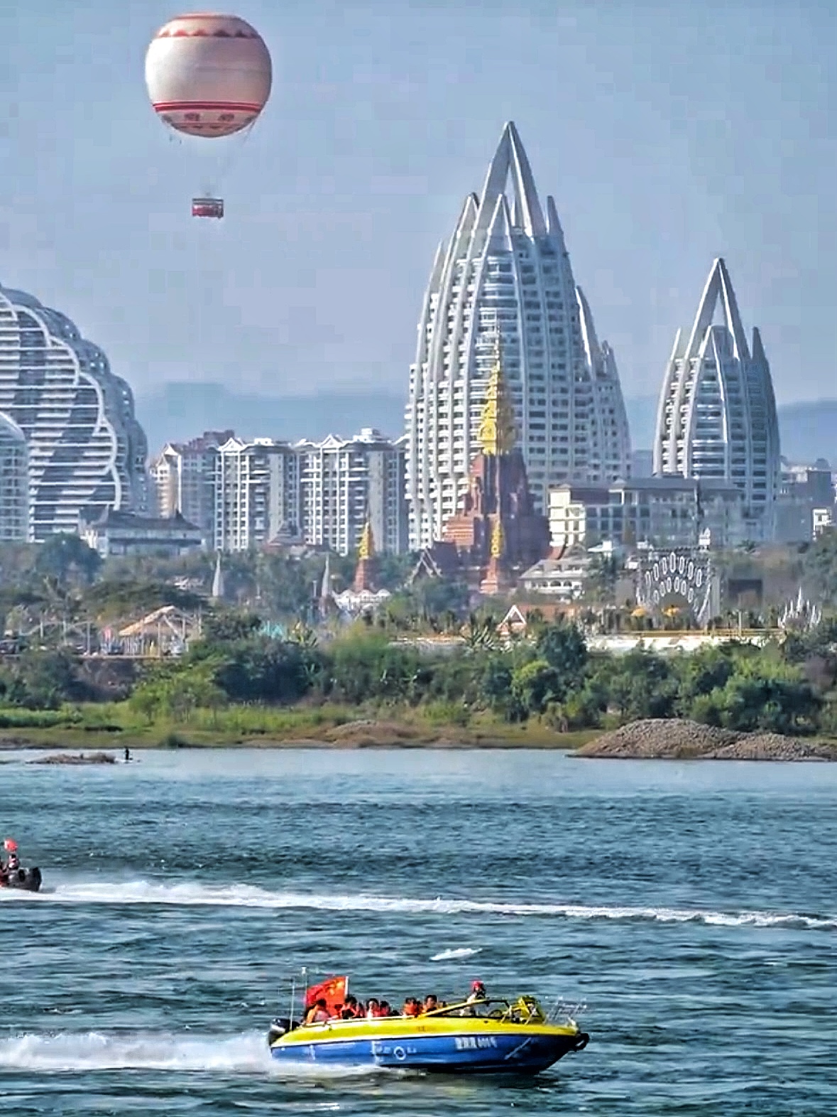 坐着快艇飞驰在澜沧江上