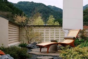 沿着蜿蜒的石板路往里走,最先迎接你的不是冰冷的大门,而是山间的味道,以及令毛孩子喜爱的“撒欢草坪”。